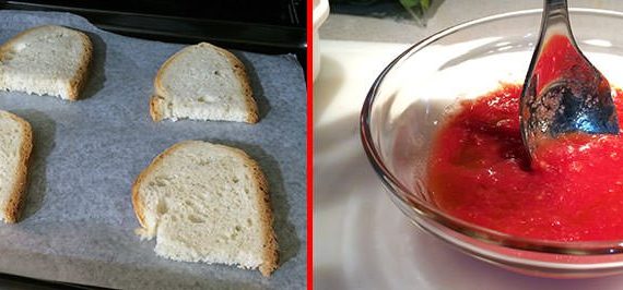 tostiamo le fette di pane a 160° per qualche minuto;