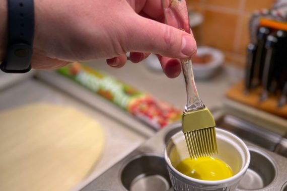 Spennelliamo con il rosso di un uovo l'interno del cestino.