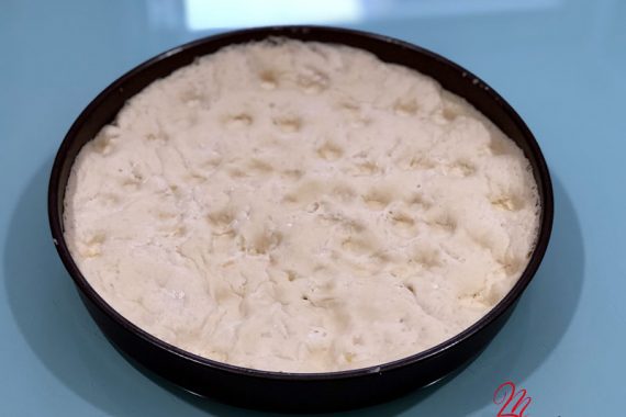 Copriamo con un canovaccio l'impasto in teglia e lasciamo lievitare in luogo asciutto e caldo per circa un'ora.
