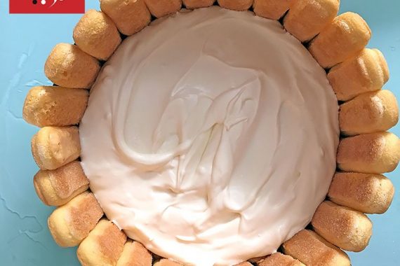 Formiamo ora uno strato di savoiardi alla base, ritagliandoli per coprire tutto il perimetro.